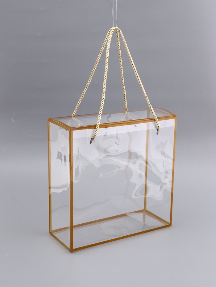 Коробка из PET с ручками, золотая, 25 х 25 х 10 см