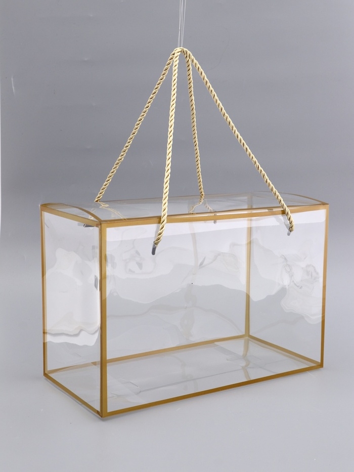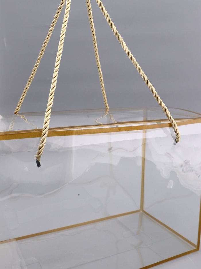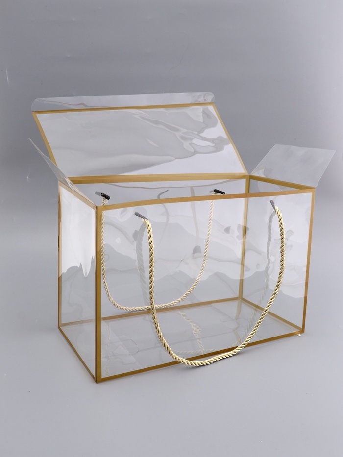 Коробка из PET с ручками, золотая, 30 х 15 х 20 см