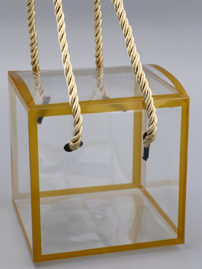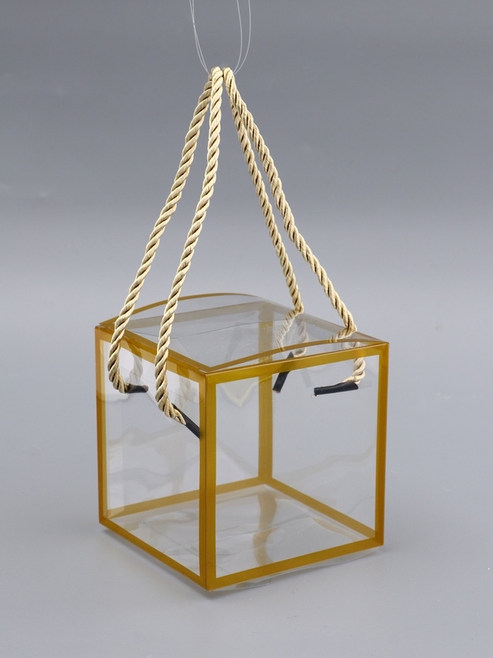 Коробка из PET с ручками, золотая, 10 х 10 х 10 см