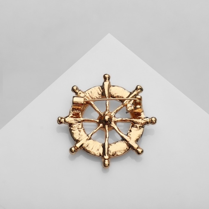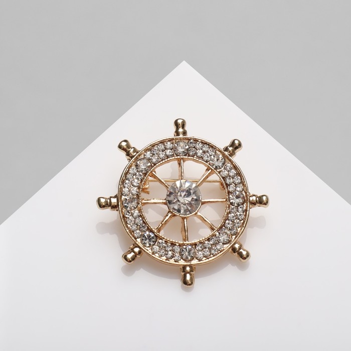 Брошь «Штурвал», цвет белый в золоте