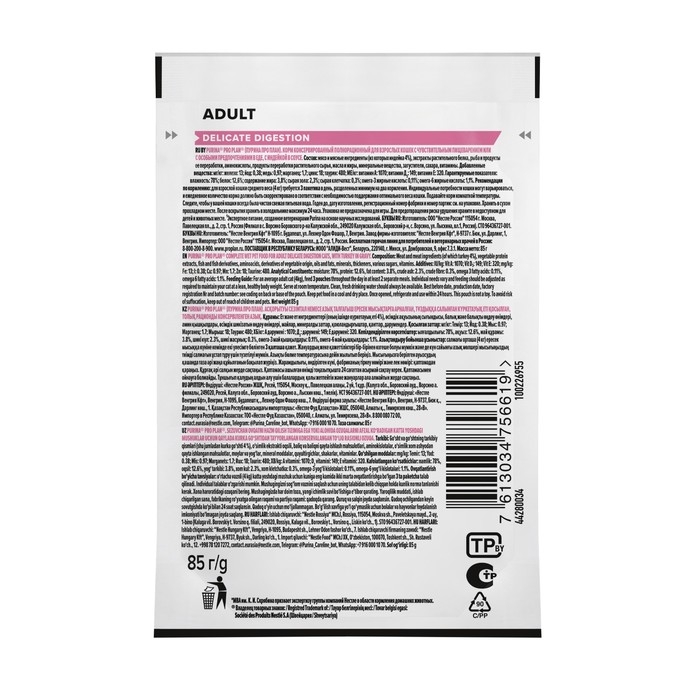 Влажный корм PRO PLAN DELICATE для кошек, индейка в соусе, пауч, 85 г