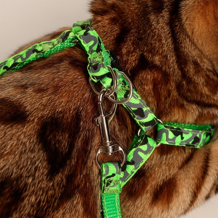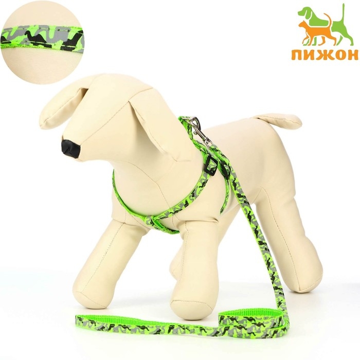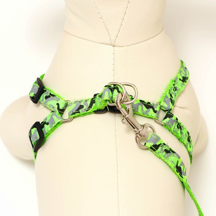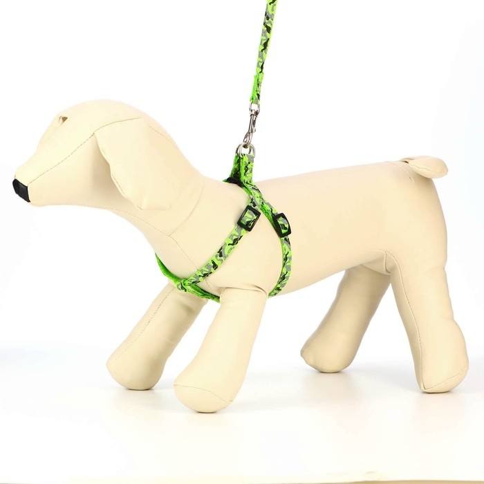 Комплект с мягкой шлейкой "Веточки", размер S, поводок 120 х 1,5 см, ОГ 28-62 см, зеленый