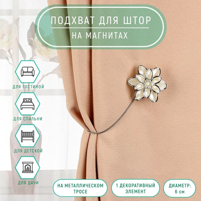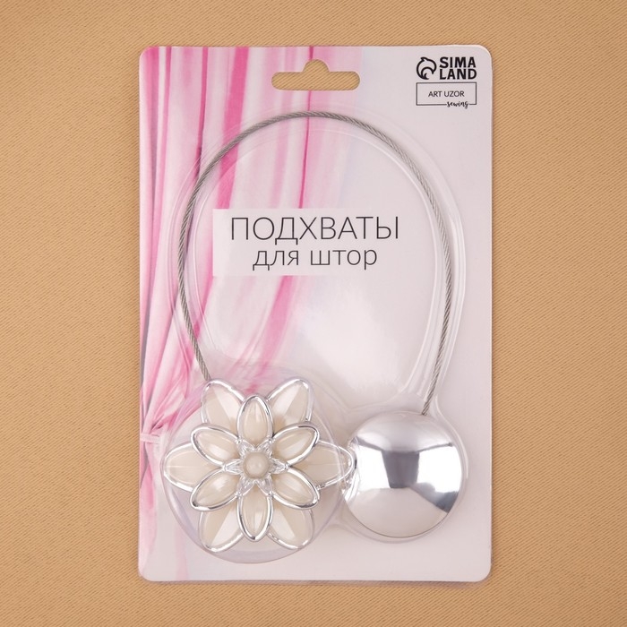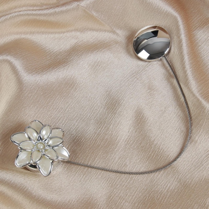Подхват для штор «Георгин», d = 6 см, цвет серебряный/белый