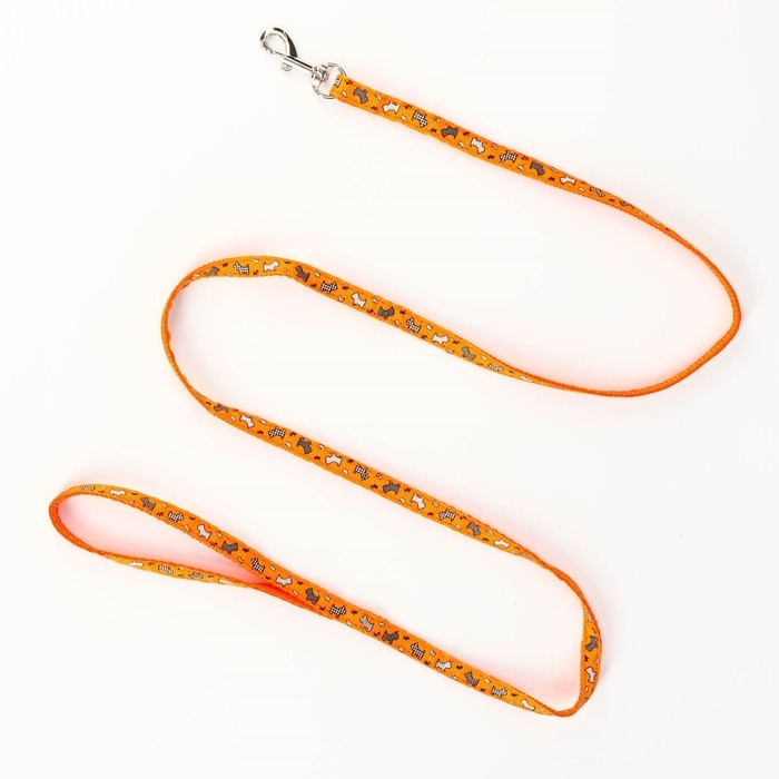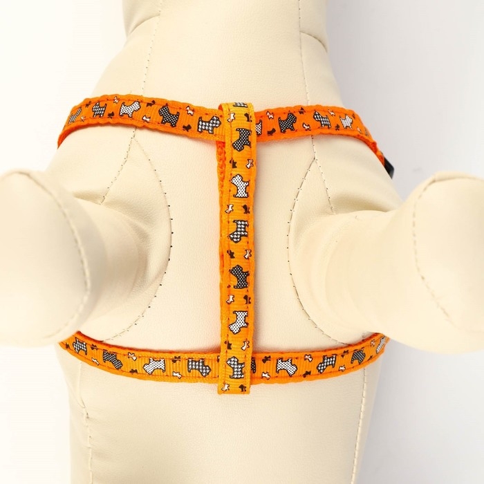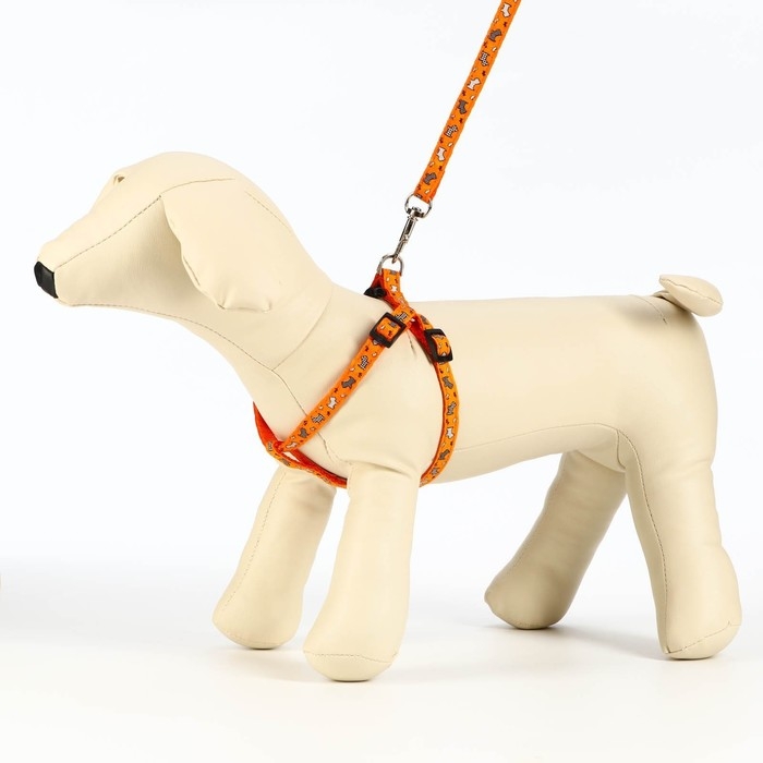 Комплект "Собачки", ширина 1 см, поводок 1,2 м, шлейка 23-35 см, оранжевый