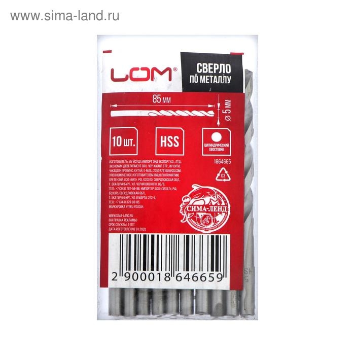 Сверло по металлу ЛОМ, HSS, цилиндрический хвостовик, 5 х 85 мм, 10 шт.