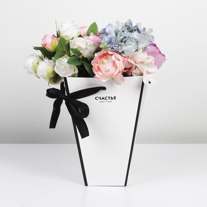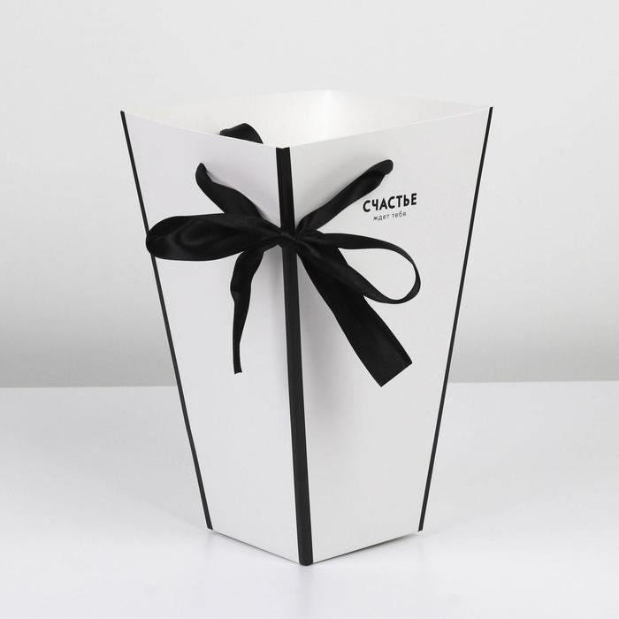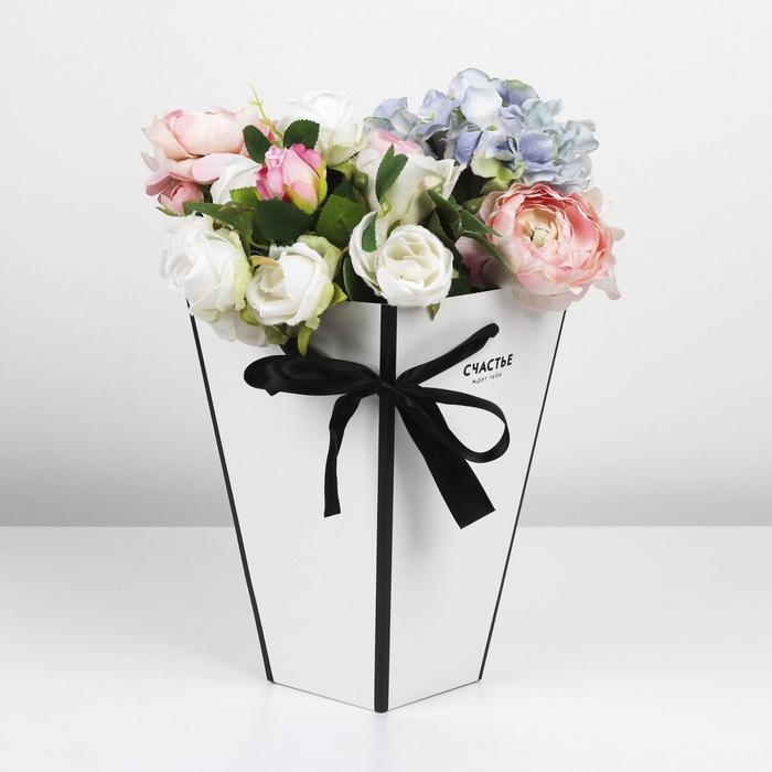 Коробка для цветов на лентах «Шанель», 17 х 25 х 9 см