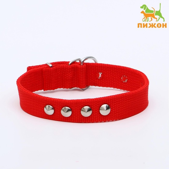 Ошейник "Комфорт" комбинированный (полиэстер, искусственная кожа), 58 х 3 см, ОШ 45-52 см, красный 6
