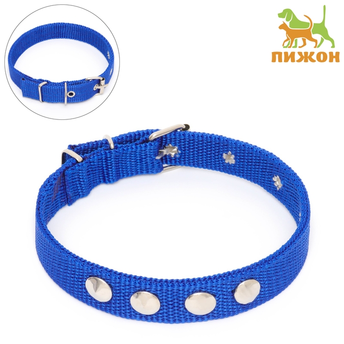 Ошейник клёпаный, 40,5 х 2 см, ОШ 26-34 см, полиэстер, синий