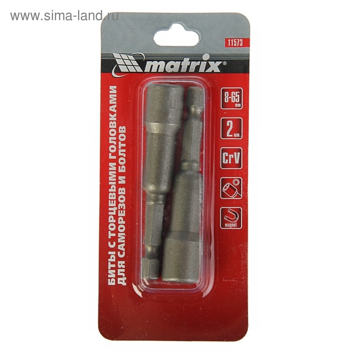 Биты с торцевыми головками MATRIX, СrV, 8 х 65 мм, 2 шт.