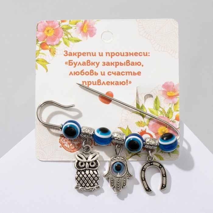 Булавка-оберег «Защита от сглаза», 1,8 см, цвет синий в серебре