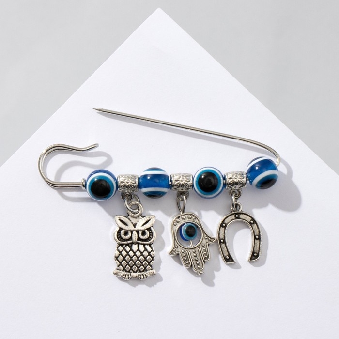 Булавка-оберег «Сова от сглаза», 6 см, цвет синий в серебре