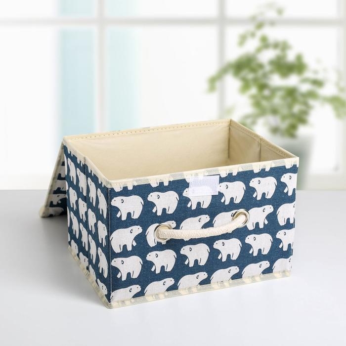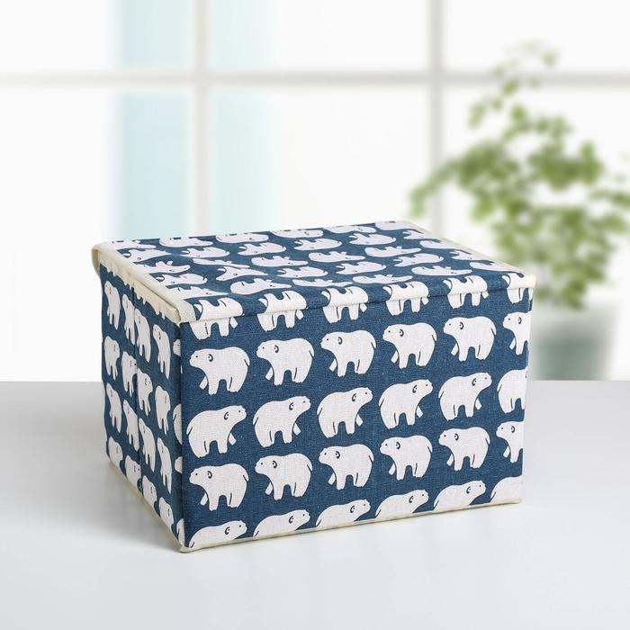 Короб стеллажный для хранения с крышкой «Северные мишки», 25×20×17 см, цвет синий
