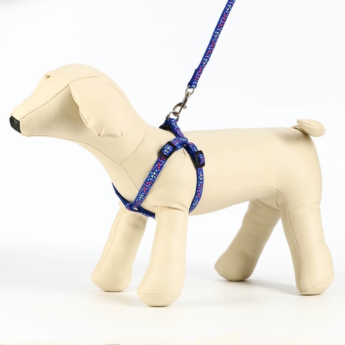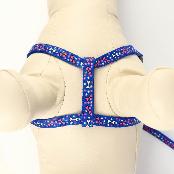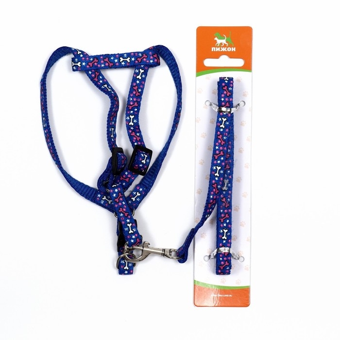 Комплект "Звёздные косточки", ширина 1 см, поводок 120 см, шлейка 23-35 см, синий