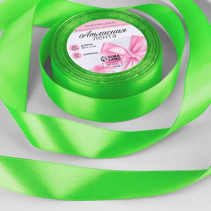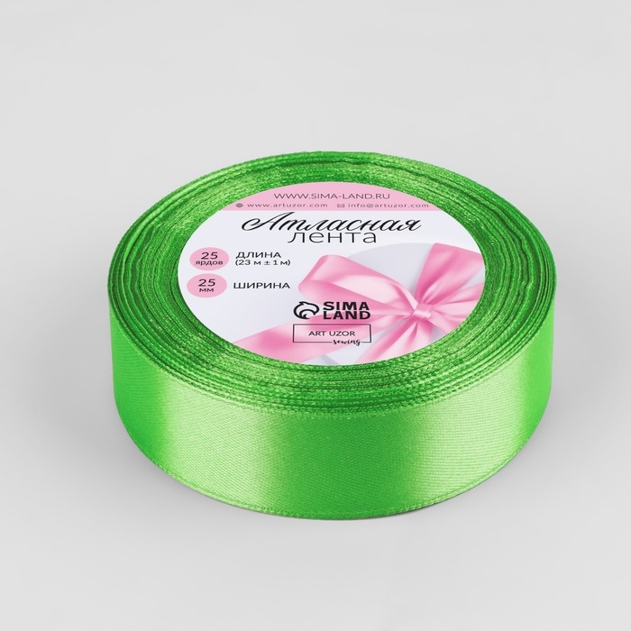 Лента атласная, 25 мм × 23 ± 1 м, цвет весенне-зелёный №52