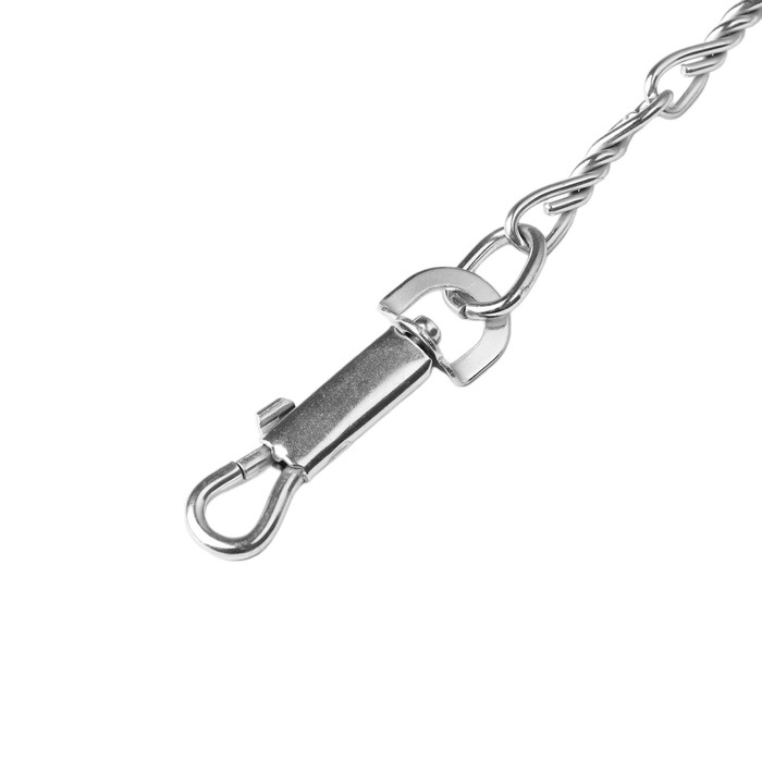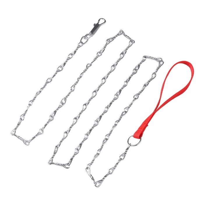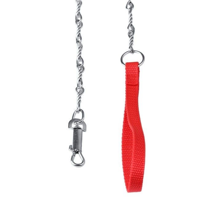 Поводок должен быть прочным и надежным. Металлический поводок полностью соответствует этим требованиям, плюс ко всему это красивый и износостойкий аксессуар. Поводок состоит из хромированной цепочки и мягкой нейлоновой ручки. Ручка прошита армированной нитью, удобно располагается в ладони и не натирает при натяжении. Поводок оснащен стальным карабином.