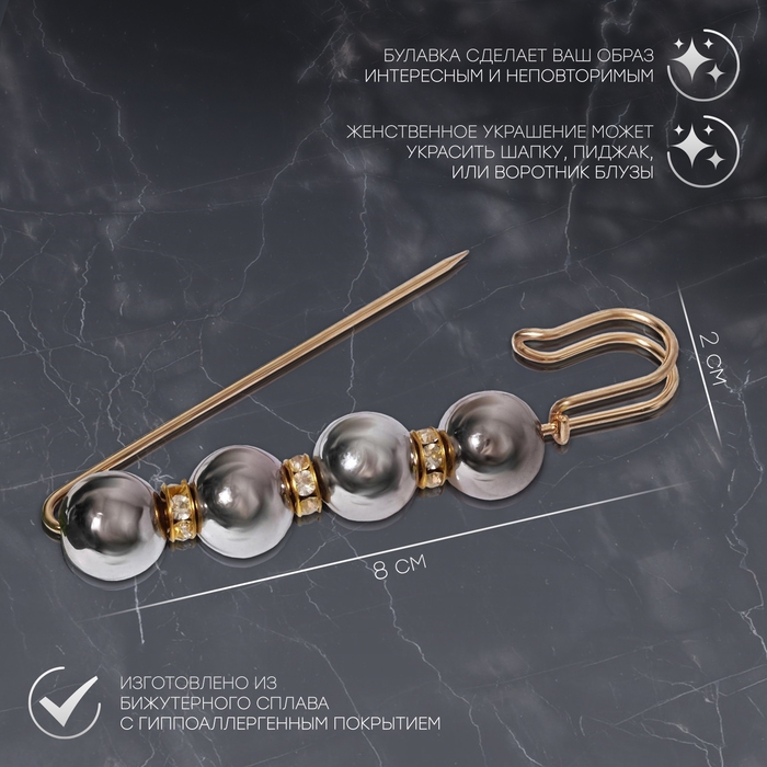 Данная булавка – настоящая находка для модниц, предпочитающих нетривиальные аксессуары. Брошь-булавка станет не только оригинальным дополнением вашего наряда, но и позволит без труда приколоть при необходимости палантин или шейный платок. Используйте её в качестве украшения шляпки, рубашки или галстука. Булавка «Квартет» шар №14, 8 см, цвет глянцевый серый в золоте внесёт особую нотку изящности в ваш образ.