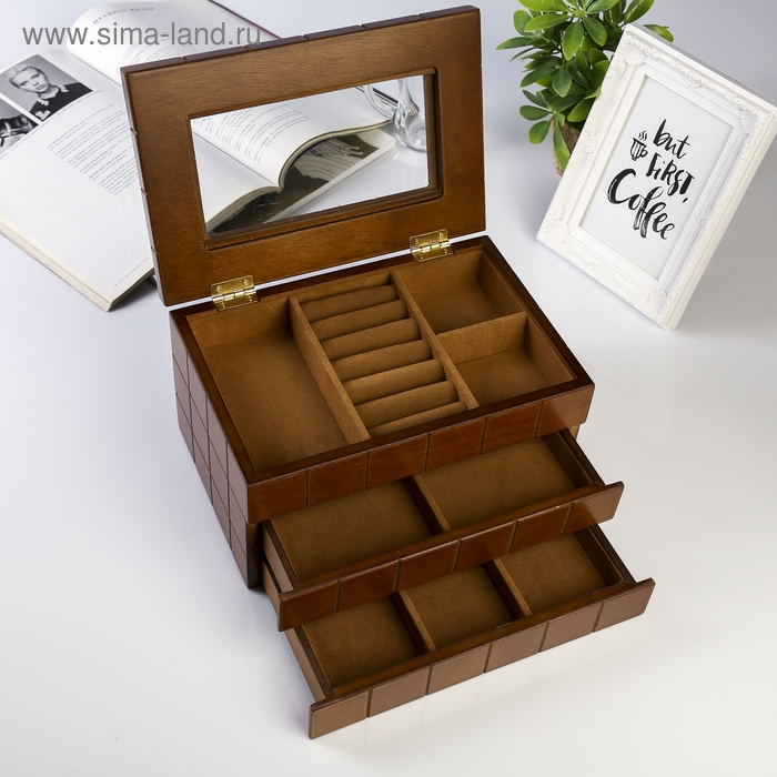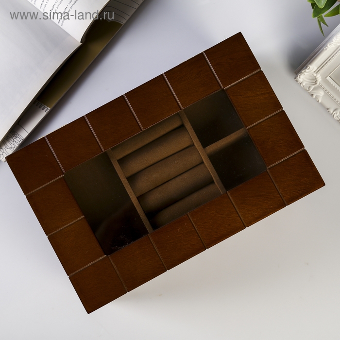 Шкатулка дерево для украшений "Клетка" коричневая 13,8х16,5х24 см