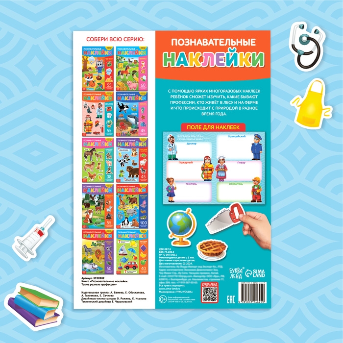 С помощью ярких многоразовых наклеек ребёнок сможет изучить, какие бывают профессии, кто живёт в лесу и на ферме и что происходит с природой в разное время года.