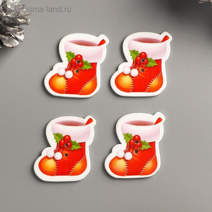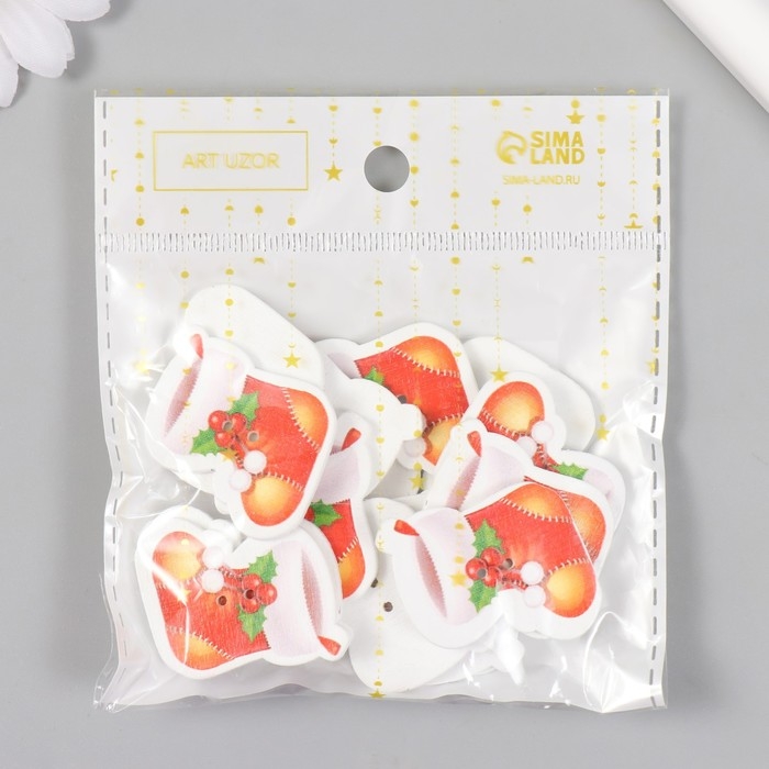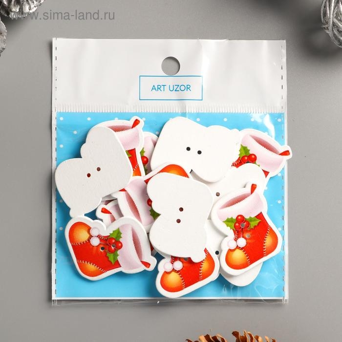 Набор пуговиц для творчества дерево "Новогодний сапог" набор 15 шт 3х2,6 см