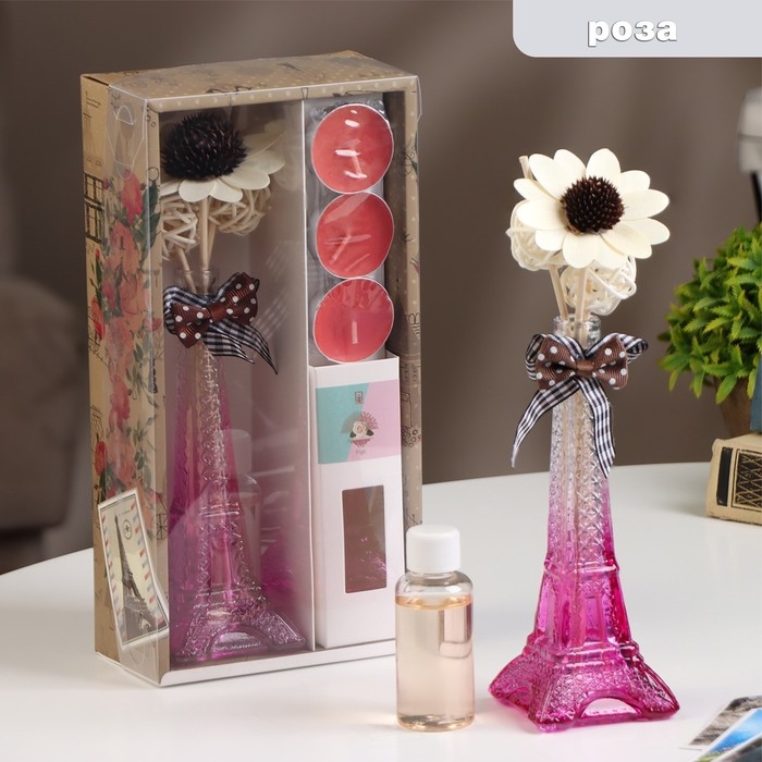 Набор подарочный "Париж" (диффузор и свечи) роза, "Богатство Аромата"