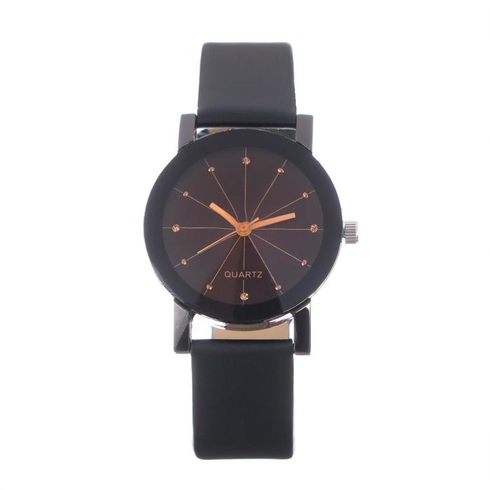 Часы наручные женские кварцевые "Ливато", d-3.7 см, черные