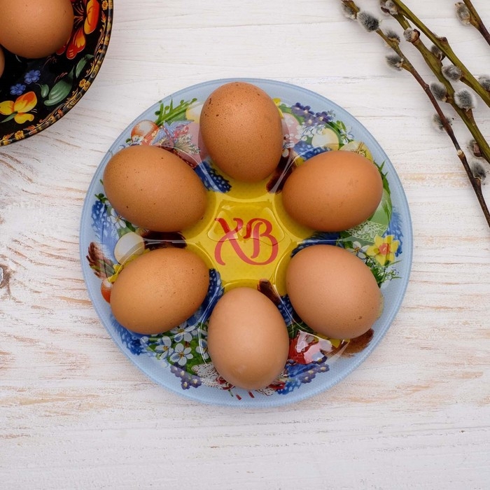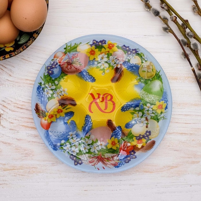 Стеклянная подставка на 6 яиц «Пасхальный венок» на пасху, 18 х 18 см
