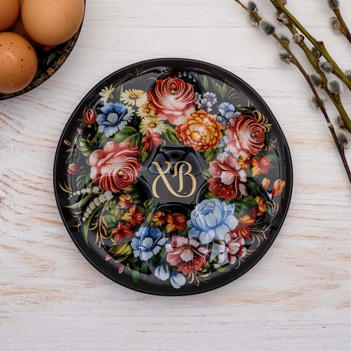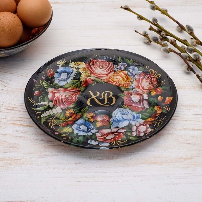 Стеклянная подставка на 6 яиц «ХВ» на пасху, 18 х 18 см.
