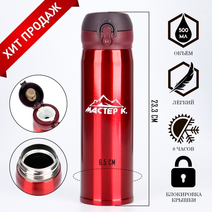 Термос, 500 мл (+/- 50 мл), Топ "Мастер К", сохраняет тепло 8 ч, 6.5 х 23.3 см