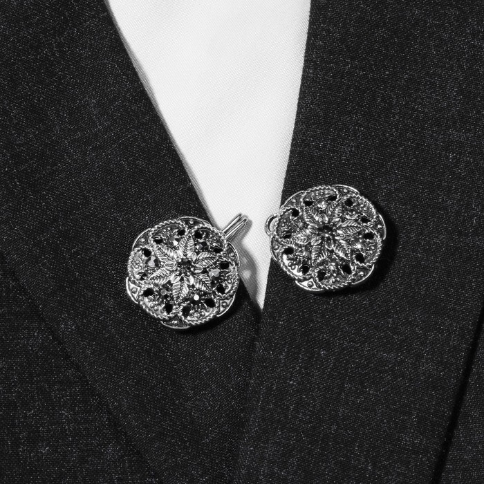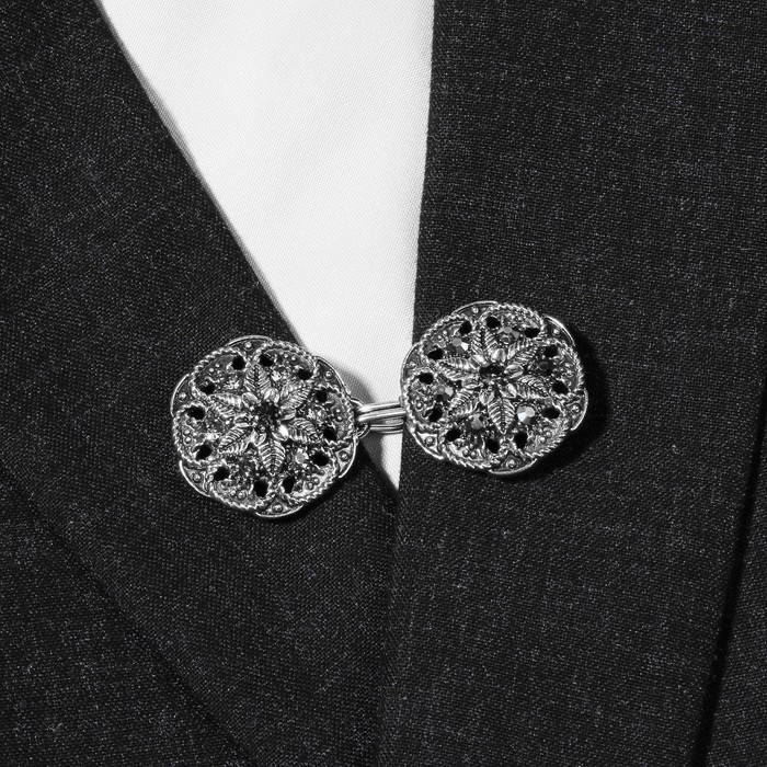 Зажим для кардигана «Цветы», цвет чёрно-серый в чернёном серебре
