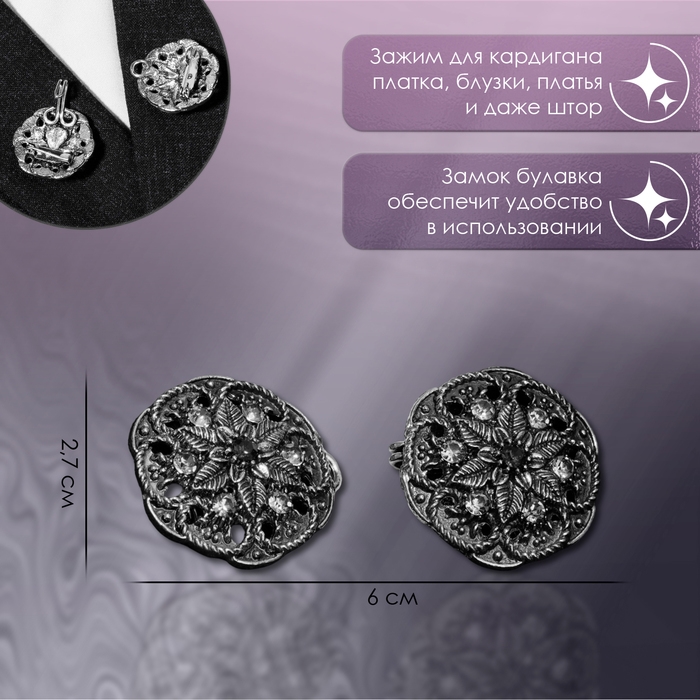 Зажим для кардигана «Барокко», цвет серый в серебре