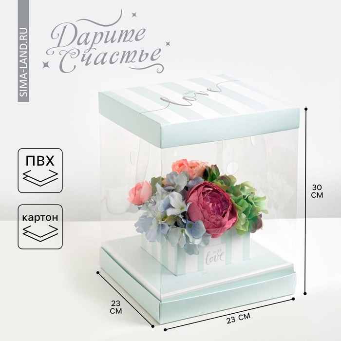 Коробка подарочная для цветов с вазой и PVC окнами складная, упаковка, «With love», 23 х 30 х 23 см