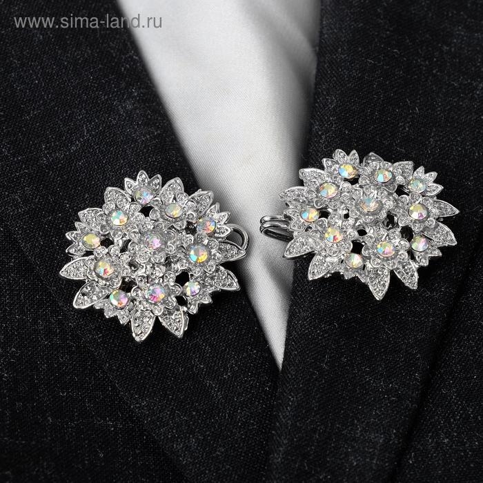 Зажим для кардигана «Соцветие», цвет радужный в серебре