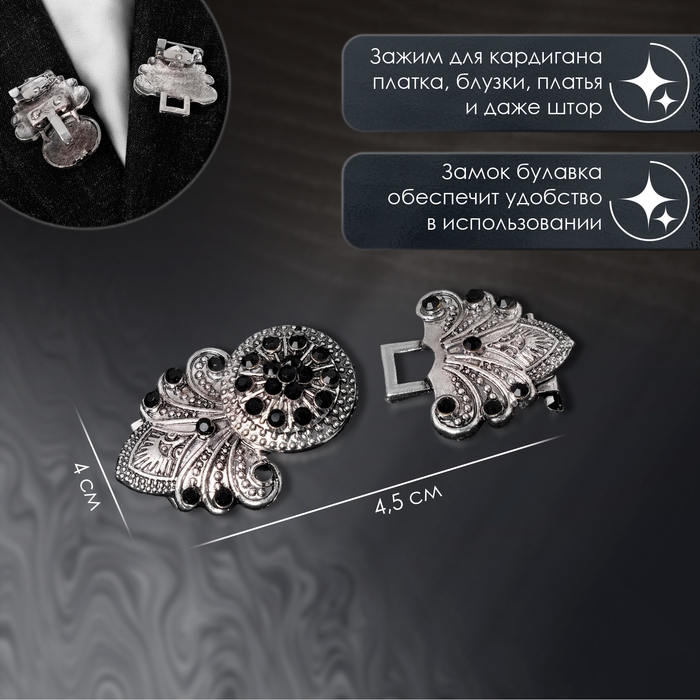 Зажим для кардигана «Барокко», цвет серый в серебре