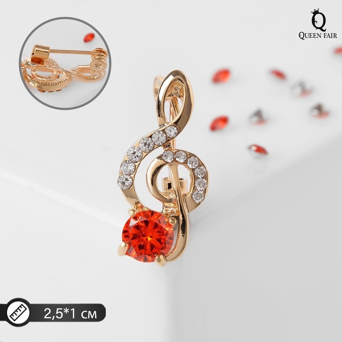 Брошь «Скрипичный ключ» мини, вдохновение, цвет бело-красный в золоте