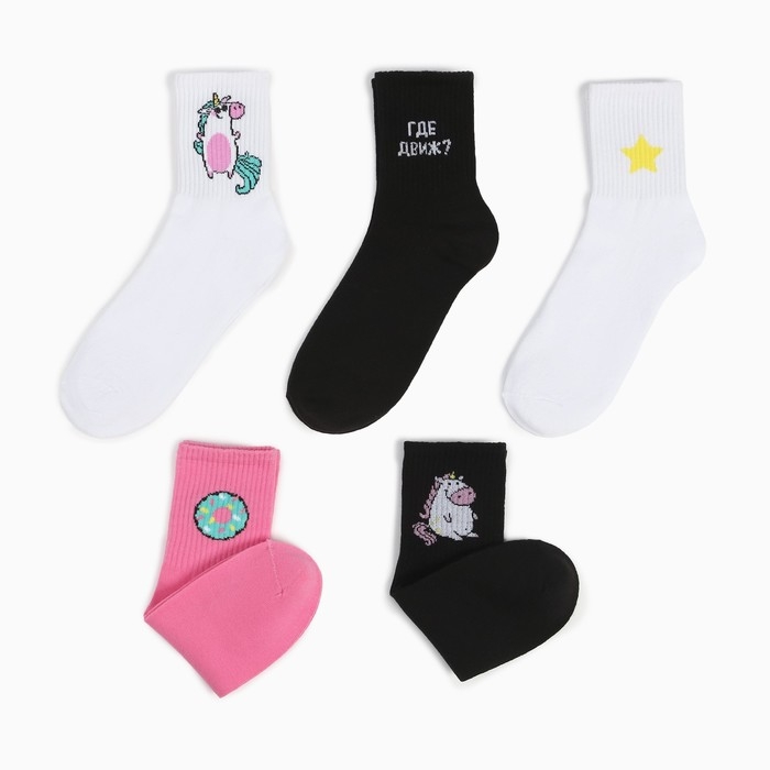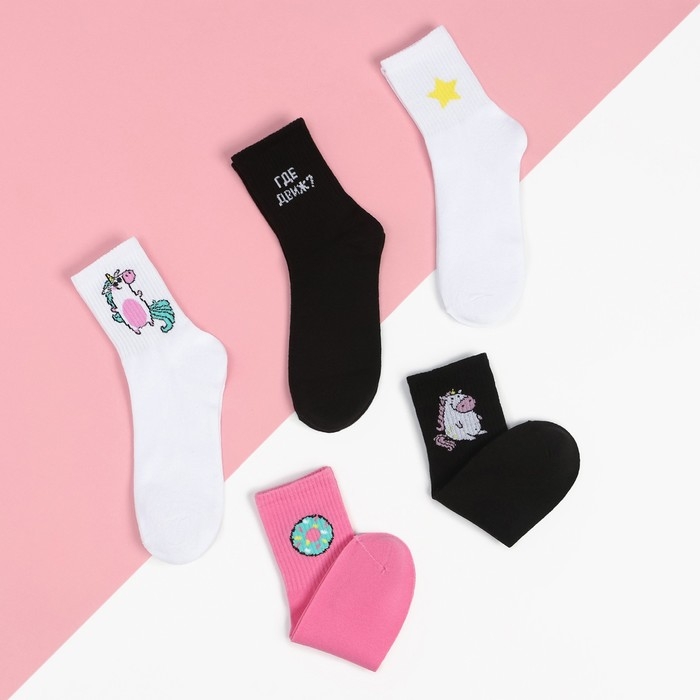 Набор женских носков KAFTAN "Единороги“ 5 пар, р. 36-39 (23-25 см)