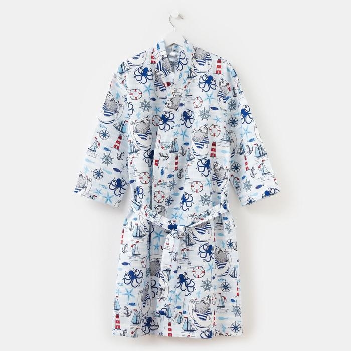 Халат мужской Этель "Капитан" рукав 3/4, размер 46-48, вафля 200г/м2, 100% хлопок