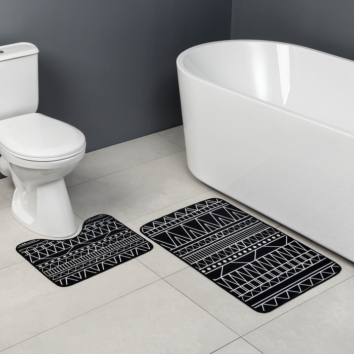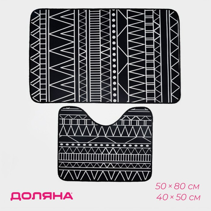 Набор ковриков для ванной и туалета Доляна «Марокканский», 2 шт, 50×80, 40×50 см, цвет чёрно-белый