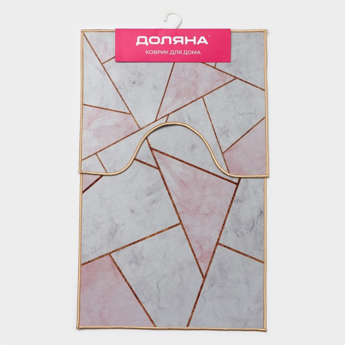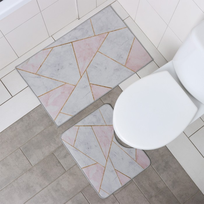 Коврики для ванной и туалета Доляна «Мрамор», 2 шт: 79×50 см, 50×39 см, цвет серый