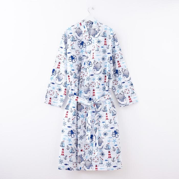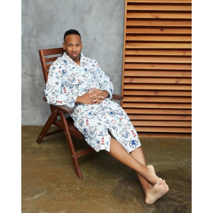 Халат мужской удлиннный Этель "Капитан" размер 46-48, вафля 200г/м2, 100% хлопок