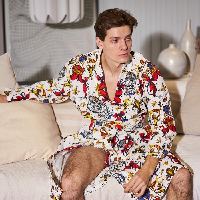 Халат мужской Этель "Настоящий мужчина" рукав 3/4, размер 46-48, вафля 200г/м2, 100% хлопок