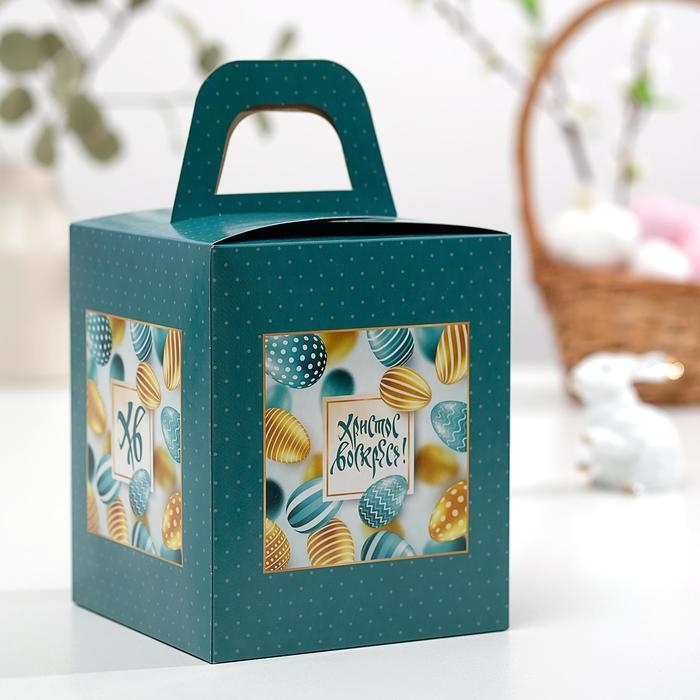 Пасхальная коробочка с окном "ХВ бирюзовая", 15 х 15 х 18 см