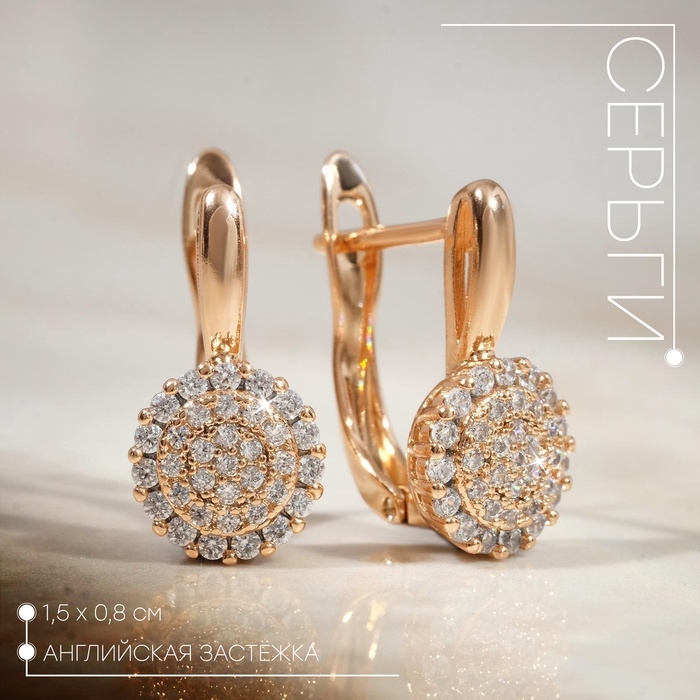 Серьги со стразами «Магма» диск, цвет белый в золоте