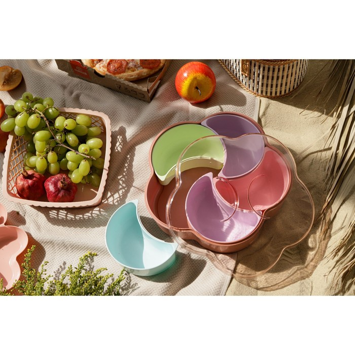 Менажница с крышкой «Барокко», 26×25×7 см, 5 съёмных ячеек, цвет МИКС