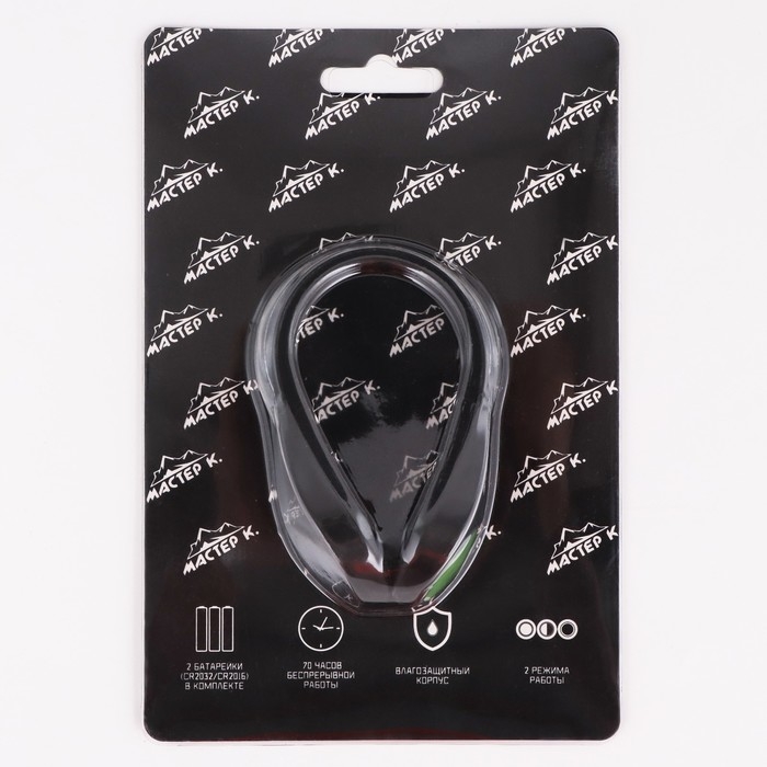 Фонарь-клип с креплением на обувь "Мастер К", 2 режима, CR2032, 7 х 9 см, зеленый