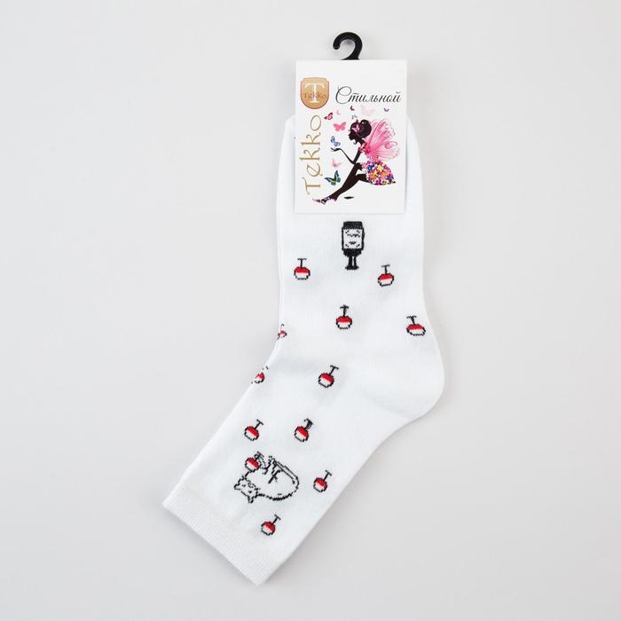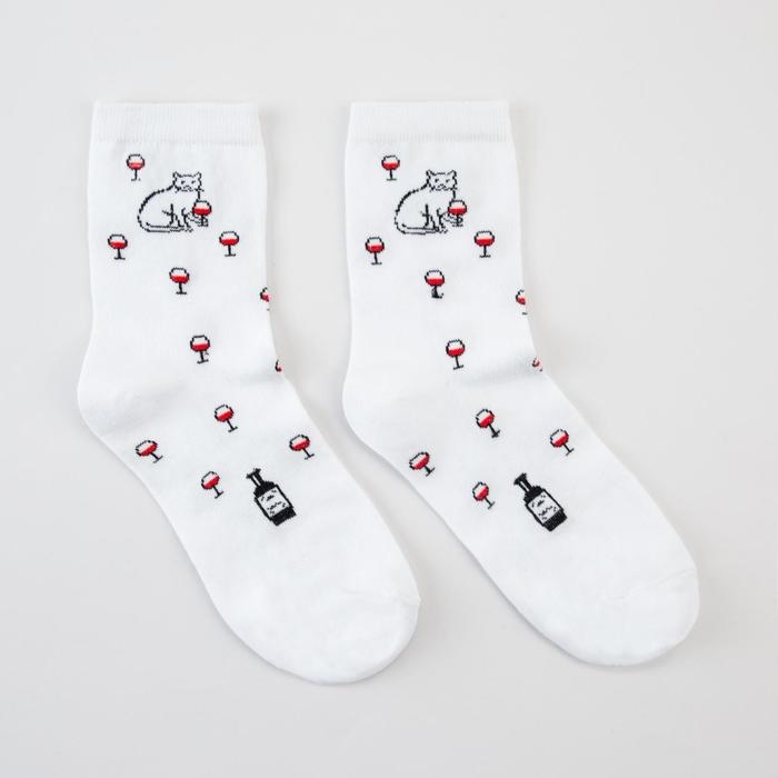 Носки женские «Киска с бокалом» цвет белый, размер 23-25