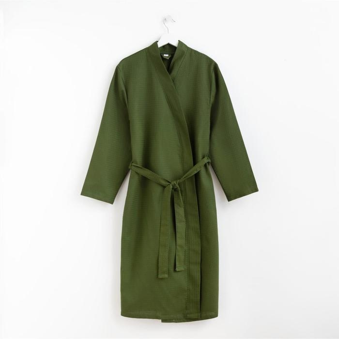 Халат вафельный мужской удлинённый Экономь и Я размер 58-60, цвет хаки, 100% хлопок, 200г/м2