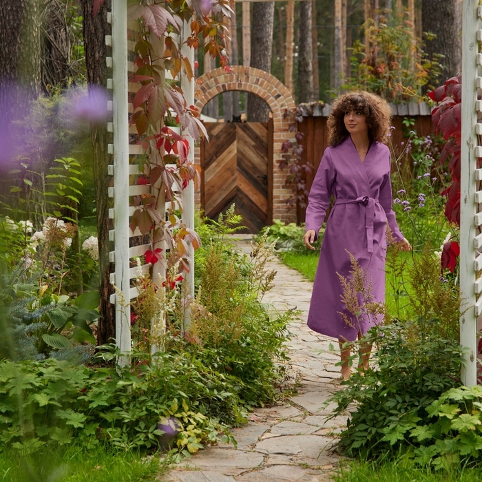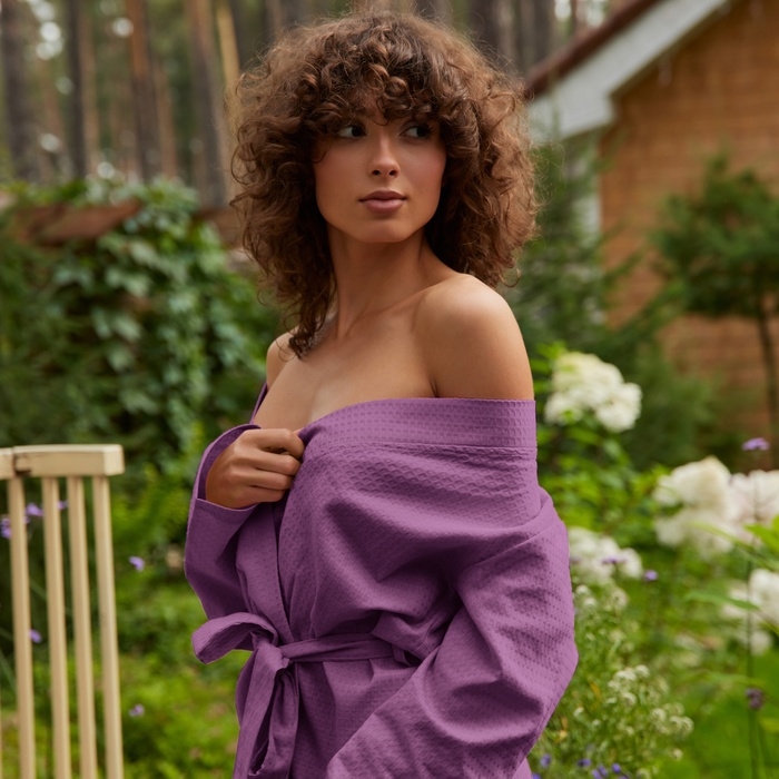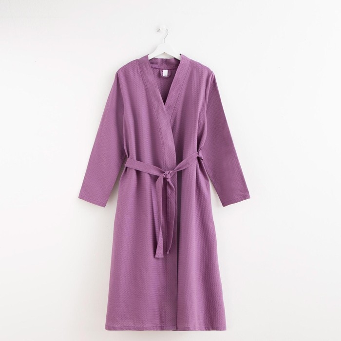 Халат вафельный женский удлинённый Экономь и Я размер 54-56, цвет лаванда, 100% хлопок, 200г/м2