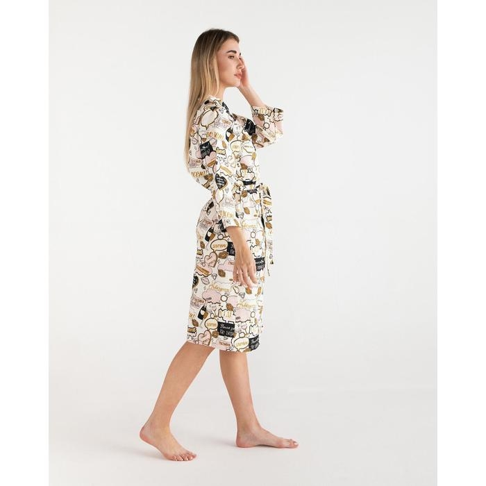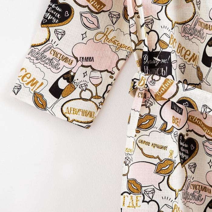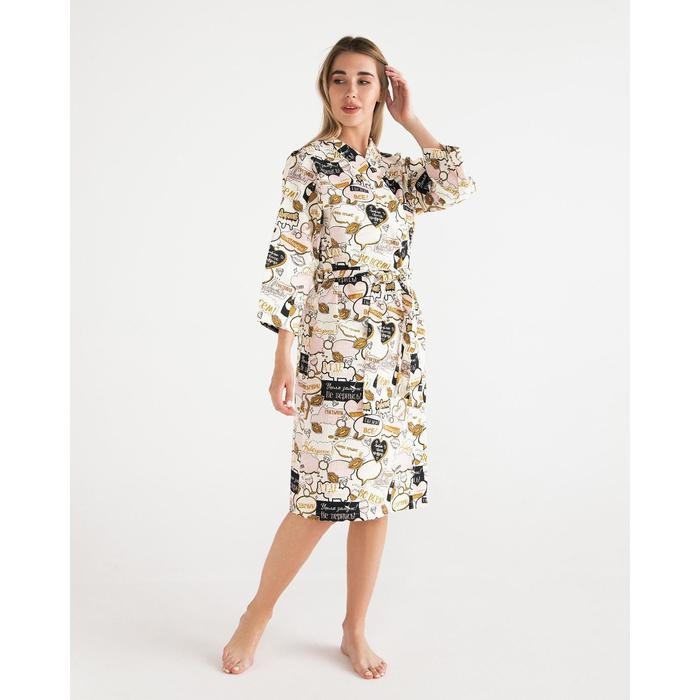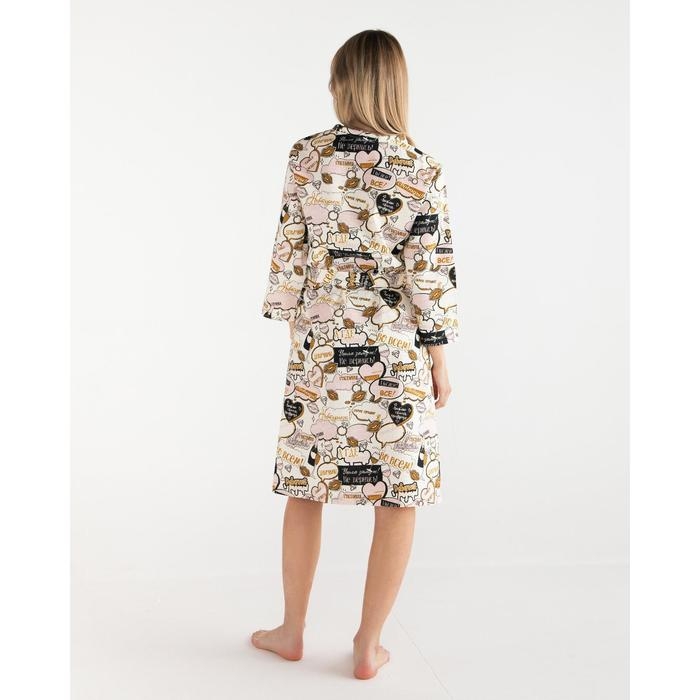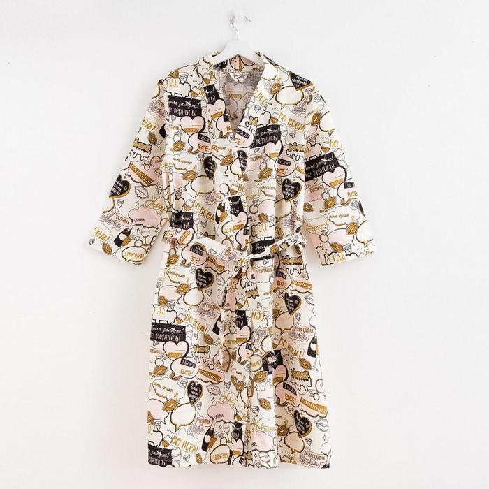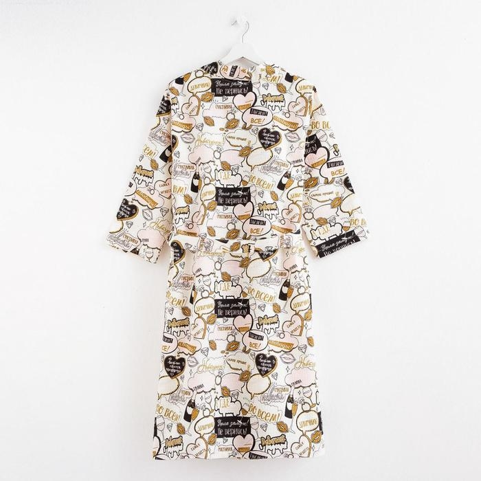 Халат женский Этель "Девичник" рукав 3/4, размер 46-48, вафля 200г/м2, 100% хлопок