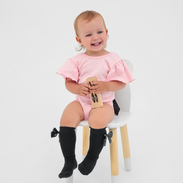 Боди Крошка Я "Чёрный бант", розовый, р.26, рост 74-80 см