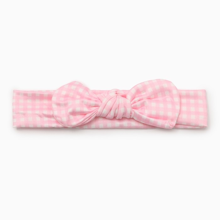 Повязка на голову Крошка Я "Бантик клетка" цв. розовый. р-р 46-48